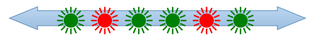 一行,由字符 R 和 G 组成的串,表示能量链的组成。R(红宝石)表示正能量宝石、G(绿宝石)表示负能量宝石。