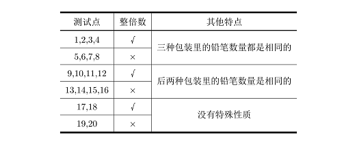 上表中“整倍数”的意义为:若为 K,表示对应数据所需要的铅笔数量 n —定是每种包装铅笔数量的整倍数(这意味着一定可以不用多买铅笔)。