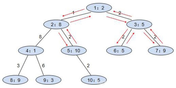 这 n 个展馆以及它们之间的道路可以看成一棵二叉树,博览会的出入口设在根节点—— 1 号展馆,小明将从这里出发乘坐电瓶车到各个展馆参观,并最终回到 1 号展馆出口。