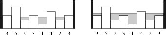小T的院子是个一维的场景,用N (1 ≤ N ≤ 100,000)个高度值H1..Hn描述。假设院子被无限高的墙壁围绕,考虑在暴风雨的时候会发生的事情:低洼的区域首先被雨水淹没,一些不相邻的“岛屿”,最终会被不断上升的水所淹没。当水位与一块土地的高度相等时,那块土地就被认为是在水下的。