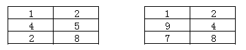 有两个r行c列的表格(行从上到下按0到r-1编号,列从左往右按0到c-1编号),每个单元格中都有一个整数n,同一个表格的各个单元格的n可能相同也可能不同。统计一下图两个表格相同单元格中整数n相同的个数。