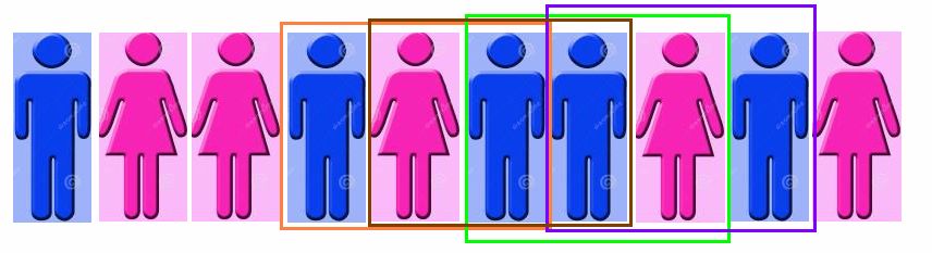 蛋糕分好了,小朋友排着队去领蛋糕。铭铭想从N 人的队伍中选出K 位小朋友帮忙分发蛋糕。但铭铭选人的方法有点特别,他想从队伍中选连续的K 个小朋友,而且必须是男比女多,你知道铭铭有多少种选择吗?