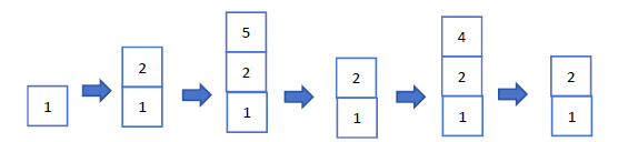 例如:有7 张卡片依次放在桌上,卡片上的数字为1,2,5,0,4,3,0,我们可以拿到最大的积分为9。过程如下:(1)把1 放在“叠放堆”,(2)把2 放在“叠放堆”,(3)把5 放在“叠放堆”,(4)取得最顶端的5 积分,(5)把4 放在“叠放堆”,(6)把3 丢弃,(7)取得最顶端的4 积分。