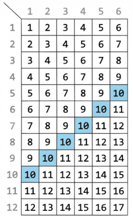 一个石阶可以看作一个,南北 12 格,东西 6 格 ,有6个位置 (蓝色部分)高度恰好为10。